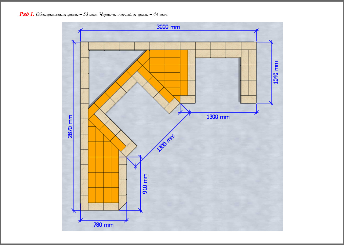 - 1235 шт. (+20 на брак) – облицювальна цегла;
