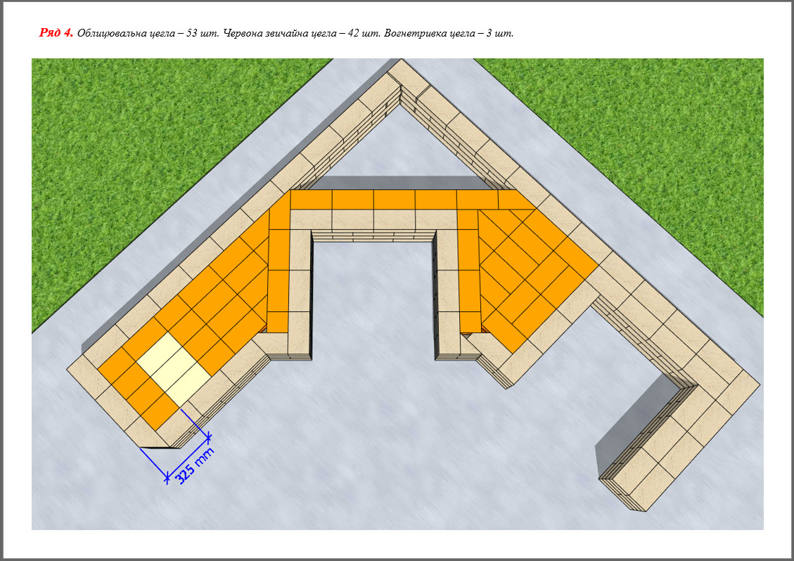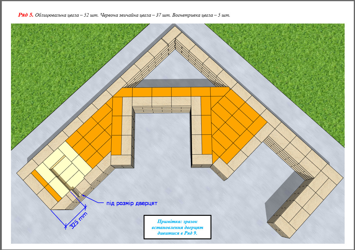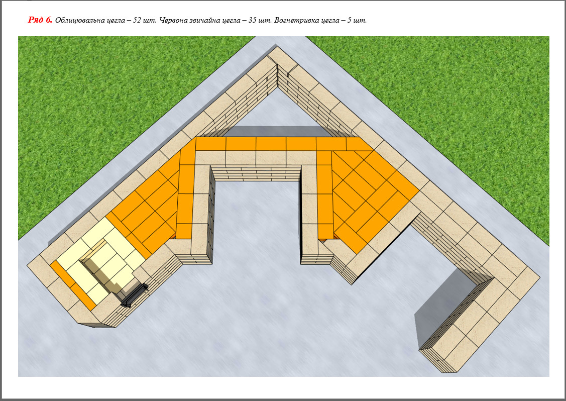 - 615 шт. (+20 на брак) – вогнетривка цегла;