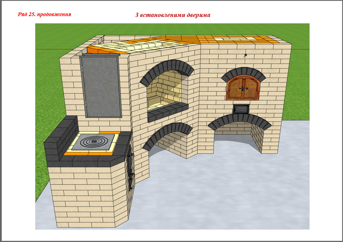 Перед кладкою даного комплексу кладеться ізолююча плівка. Використовується вогнетривка , облицювальна та звичайна цегла розміром 250*120*65 мм.