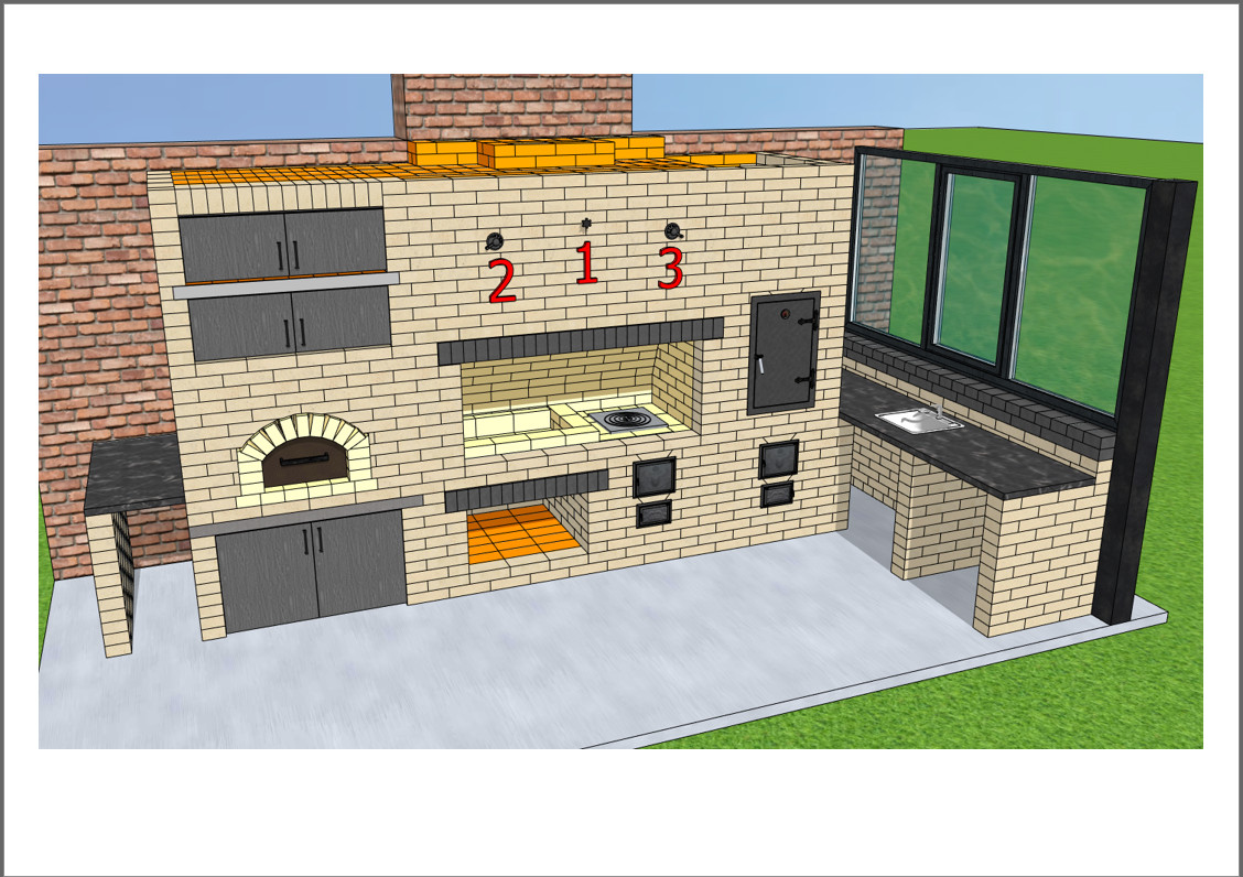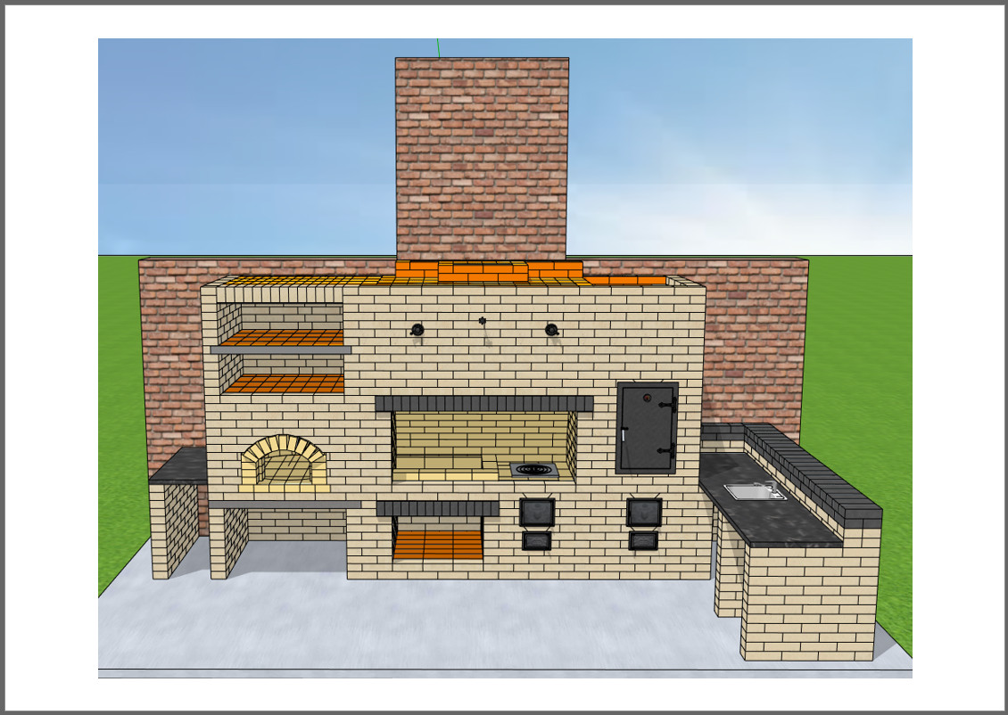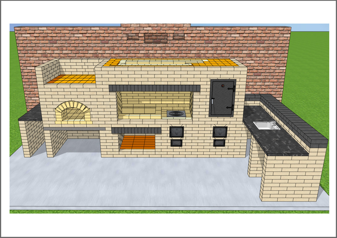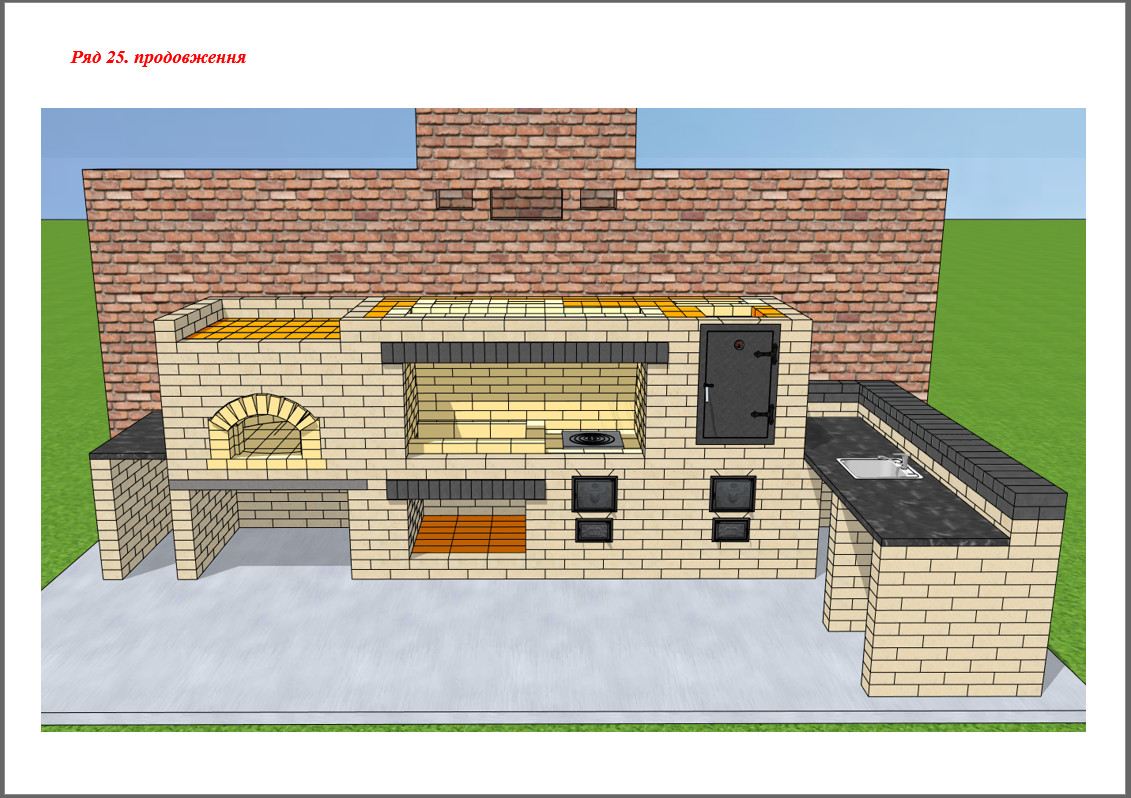 Проект налічує 128 сторінок. У проект входить: мангал, варильна поверхня, коптильня та піч для піци, стіл та мийка.