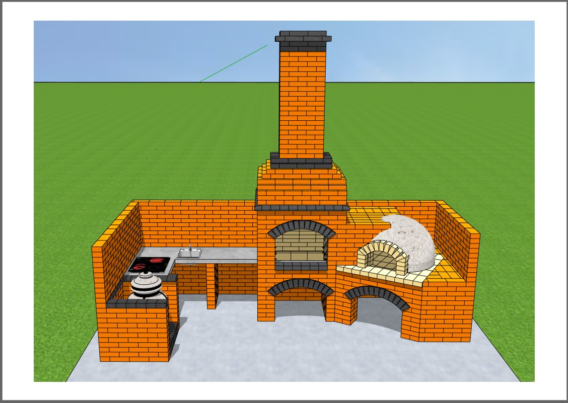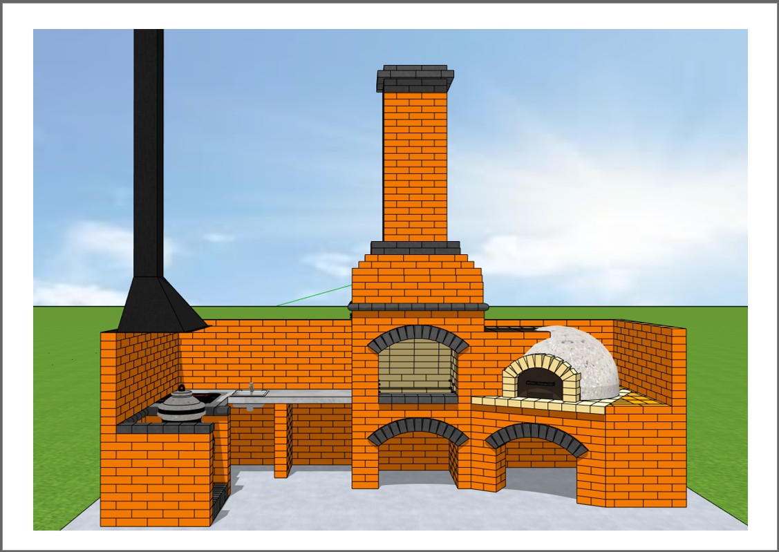 Проект налічує 116 сторінок. У проект входить: мангал, варочна поверхня, піч для піци, місце під тандир, мийка та стіл.