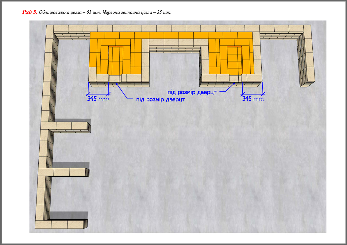 - 404 шт. (+20 на брак) – вогнетривка цегла;