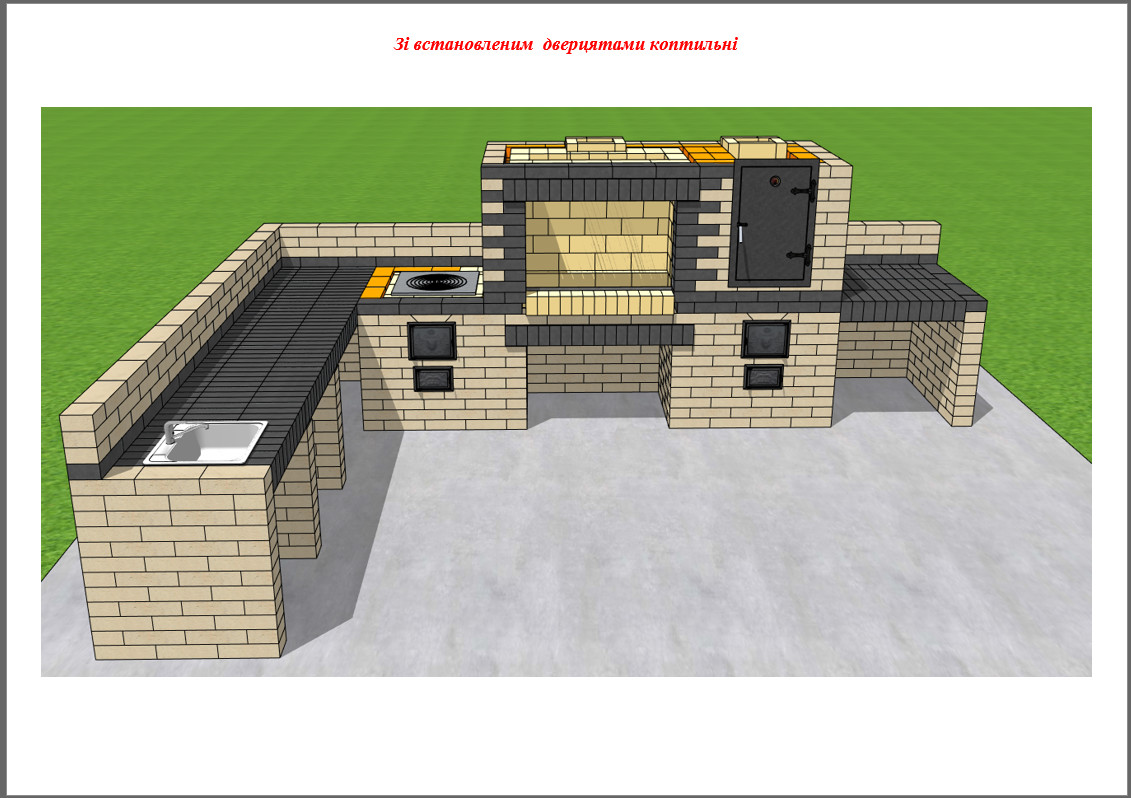 Проект налічує 103 сторінок. У проект входить: мангал, варочна поверхня, коптильня, стіл та мийка.