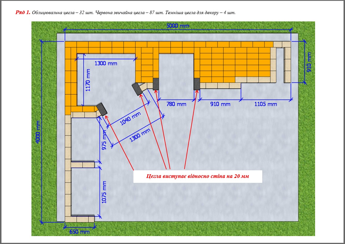- 787 шт. (+20 на брак) облицювальна цегла;