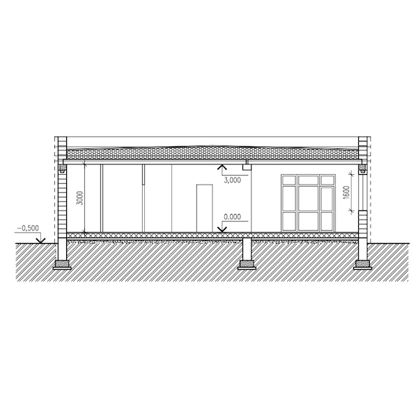 - Два розріза. На розрізах показана висота приміщень, віконних і дверних прорізів, підвіконь. Описаний склад перекриття між поверхами та підлоги.