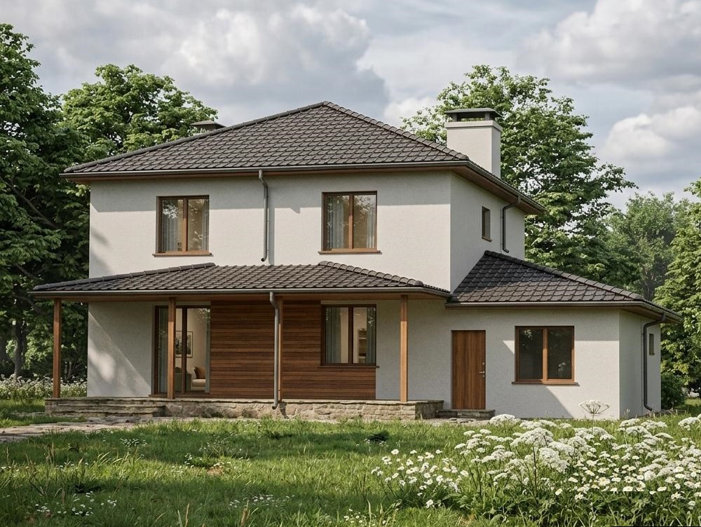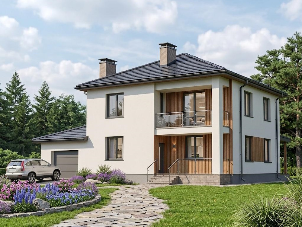 Двоповерховий будинок з гаражем, балконом та терасою: