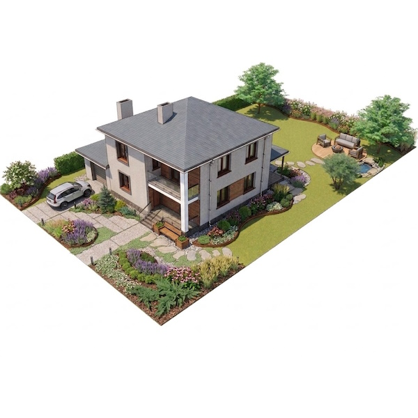 - Схема забудови ділянки з нанесеним будинком і відступами від меж ділянки.