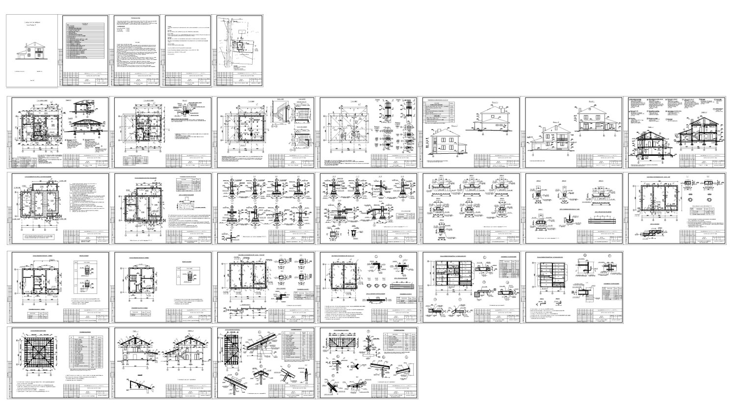 - креслень фундаментів що включають в себе плани фундаментів, розрізи фундаментів, по кожній стіні на яких показано глибина закладення фундаментів, схеми арматурних каркасів, специфікацію матеріалів необхідних для влаштування фундаментів.
