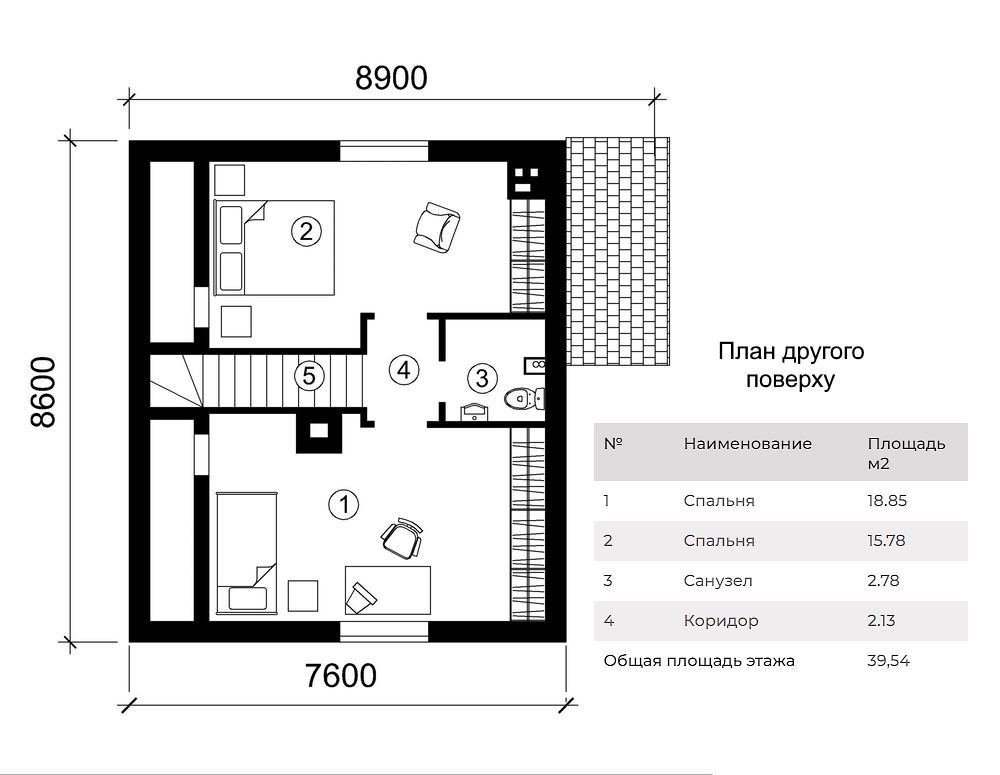 На другому поверсі розташовані дві великі спальні і санвузол.