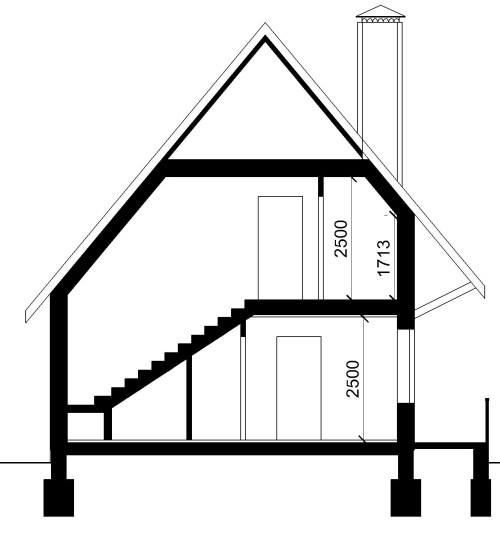 Будинок накритий двосхилим дахом з ухилом 50 град.