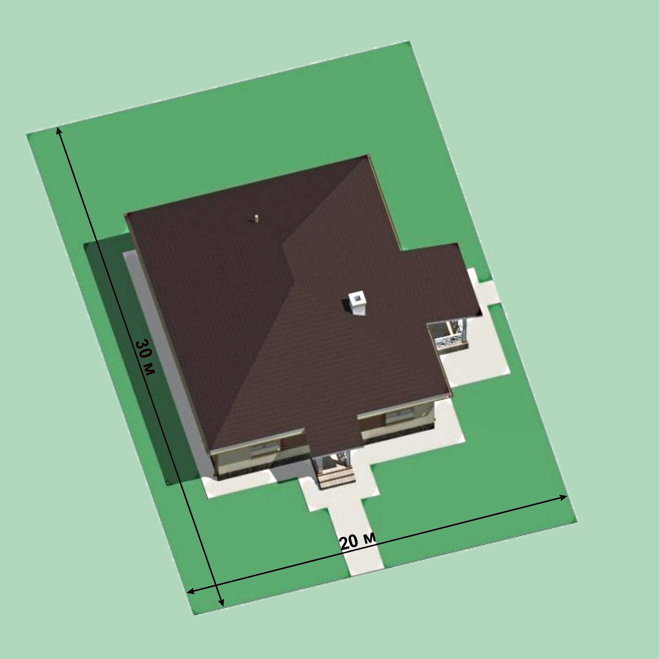 - Схема забудови ділянки з нанесеним будинком і відступами від меж ділянки.