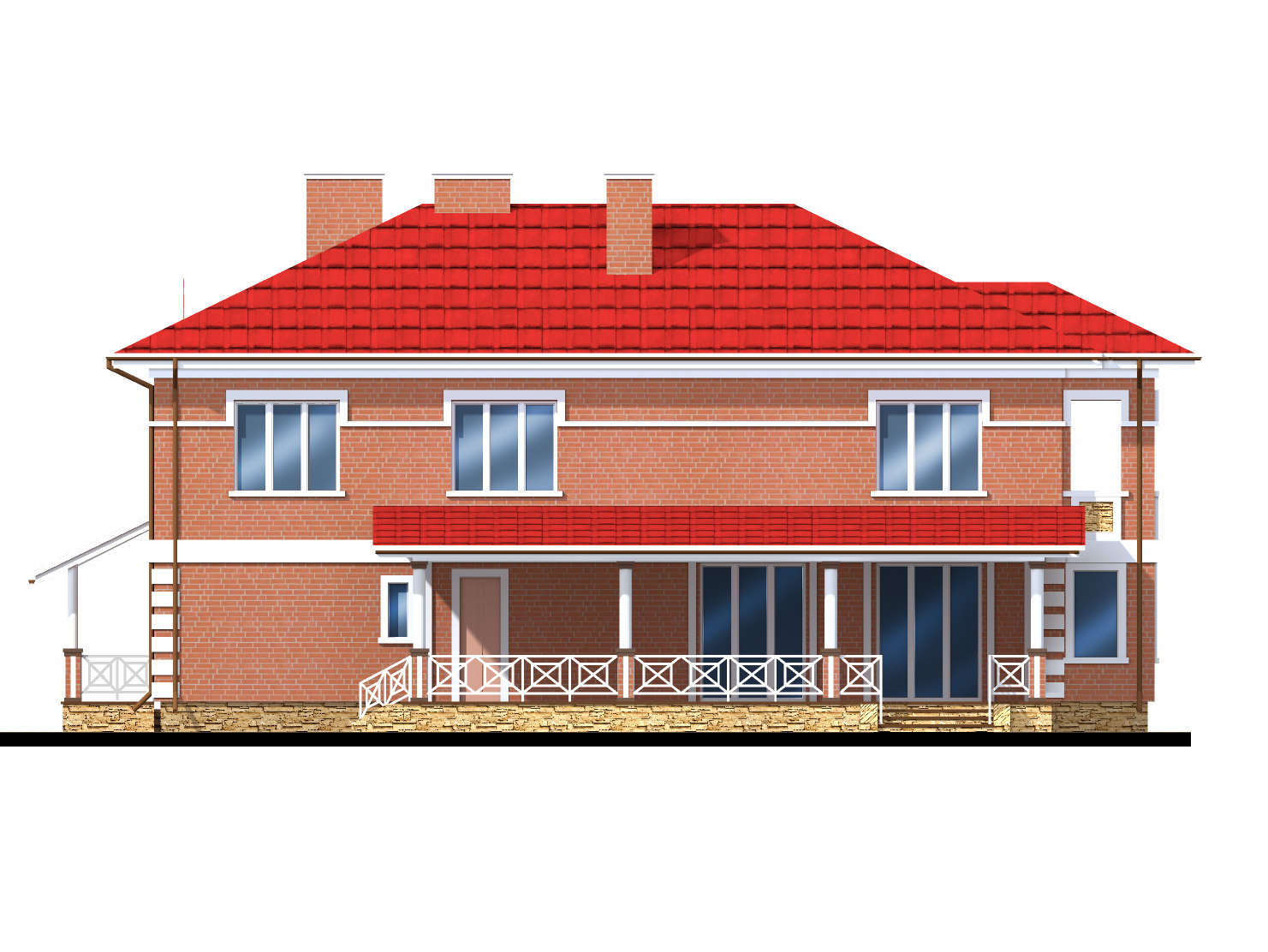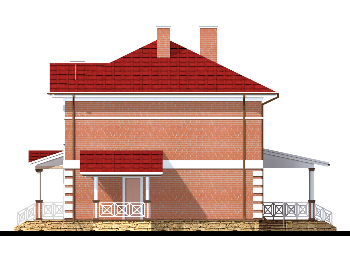 Проект солідного двоповерхового будинку з балконом, верандою і великою вітальнею: