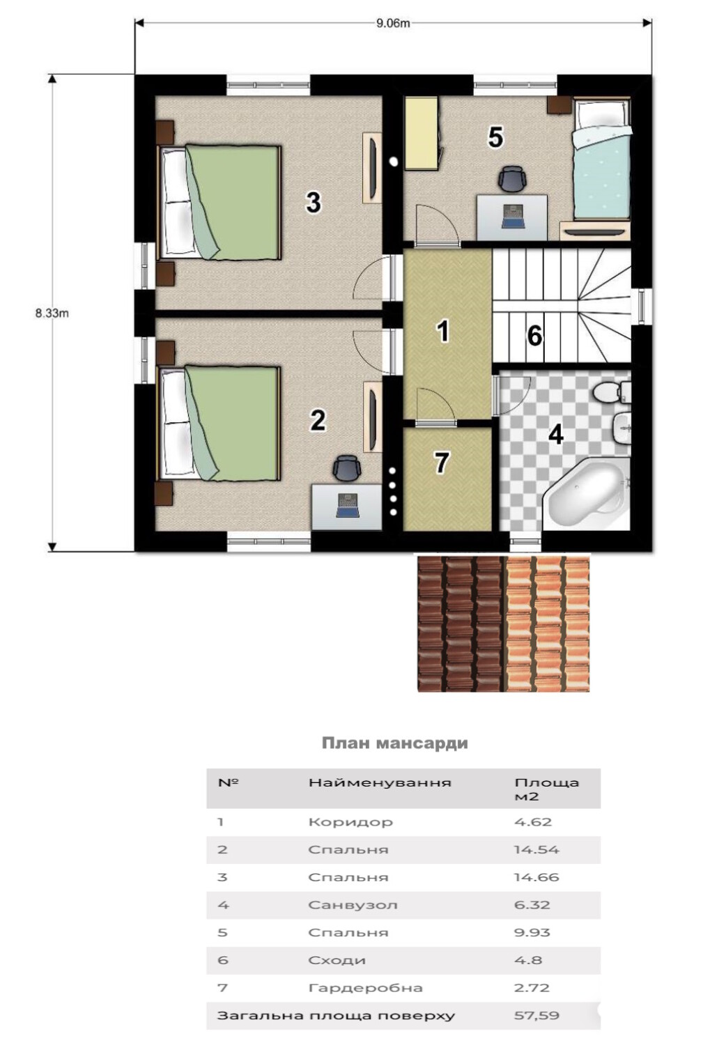 - Креслення покрівлі, що включають в себе план крокв, з переліком елементів, розрізи покрівлі, на якому вказані розміри основних елементів, перелік необхідних матеріалів.