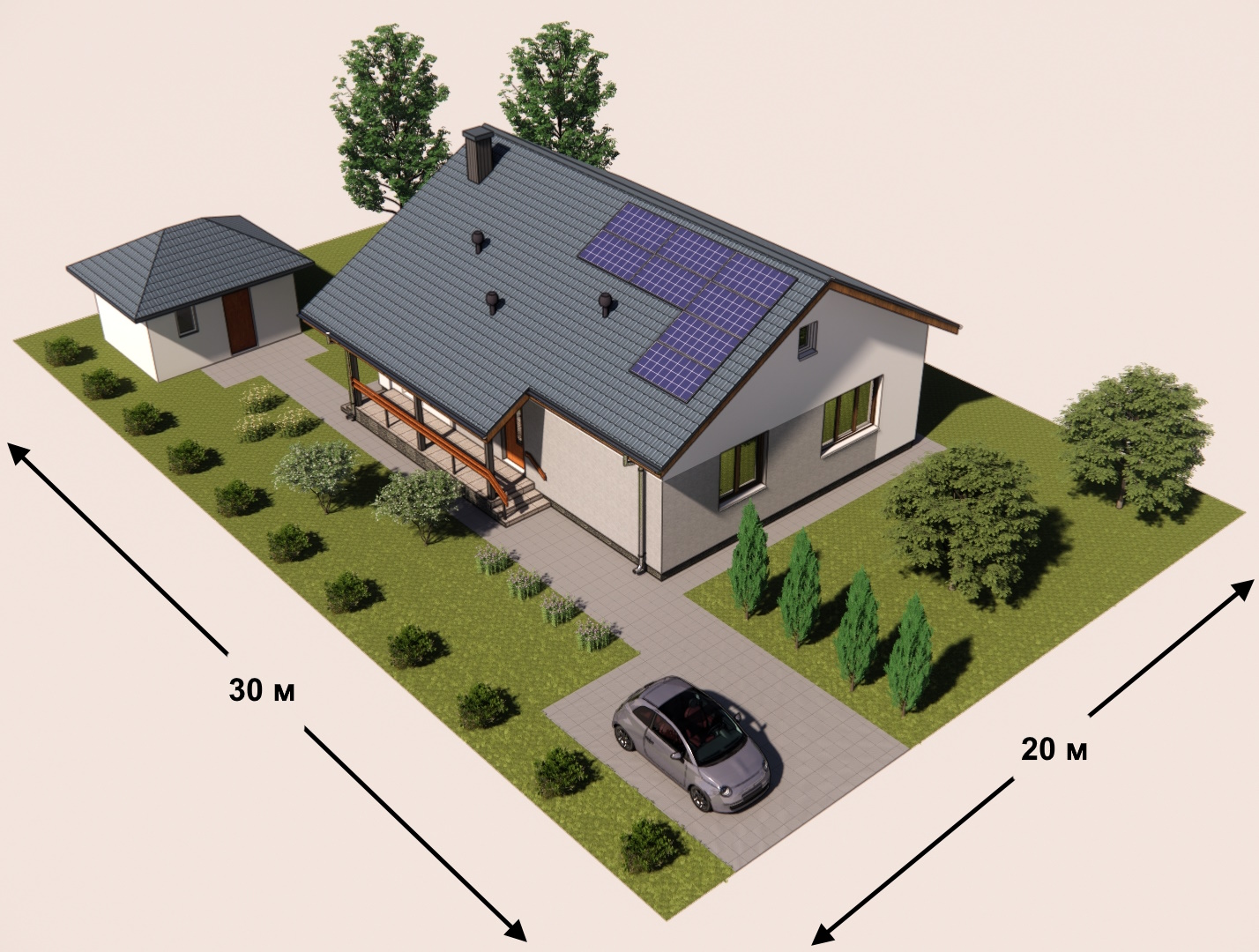 - Схема забудови ділянки з нанесеним будинком і відступами від меж ділянки.