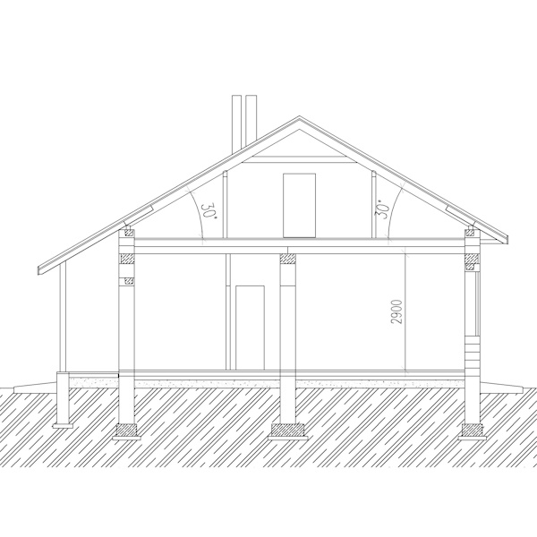 - Два розріза. На розрізах показана висота приміщень, віконних і дверних прорізів, підвіконь. Описаний склад перекриття між поверхами та підлоги.